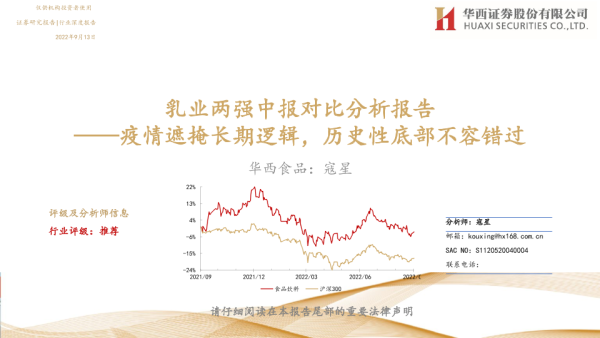 【华西证券】【20220913】乳业两强中报对比分析报告:疫情遮掩长期逻辑,历史性底部不容错过-30页 证券期货研究报告