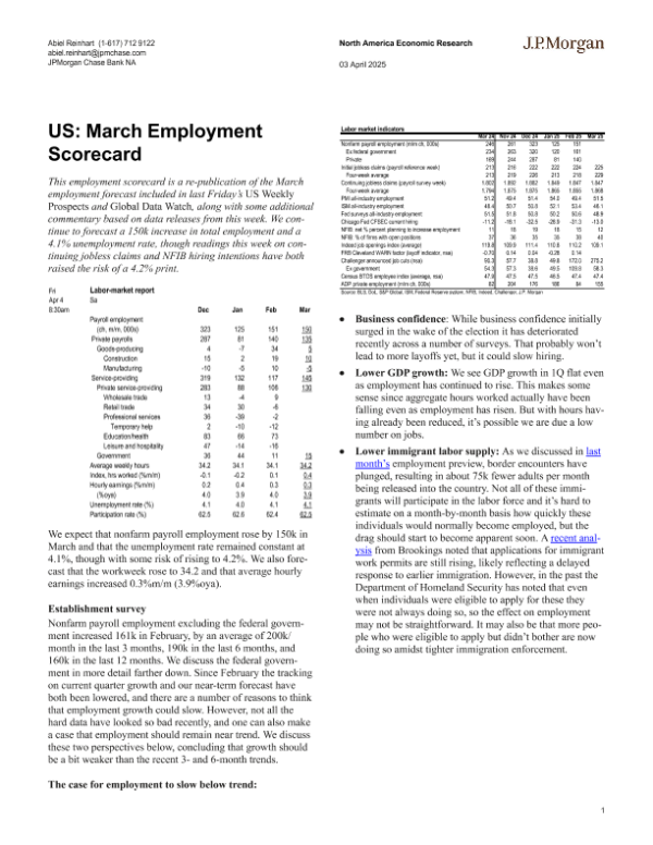 【J.P. Morgan】【20250403】March Employment Scorecard-9页 宏观策略