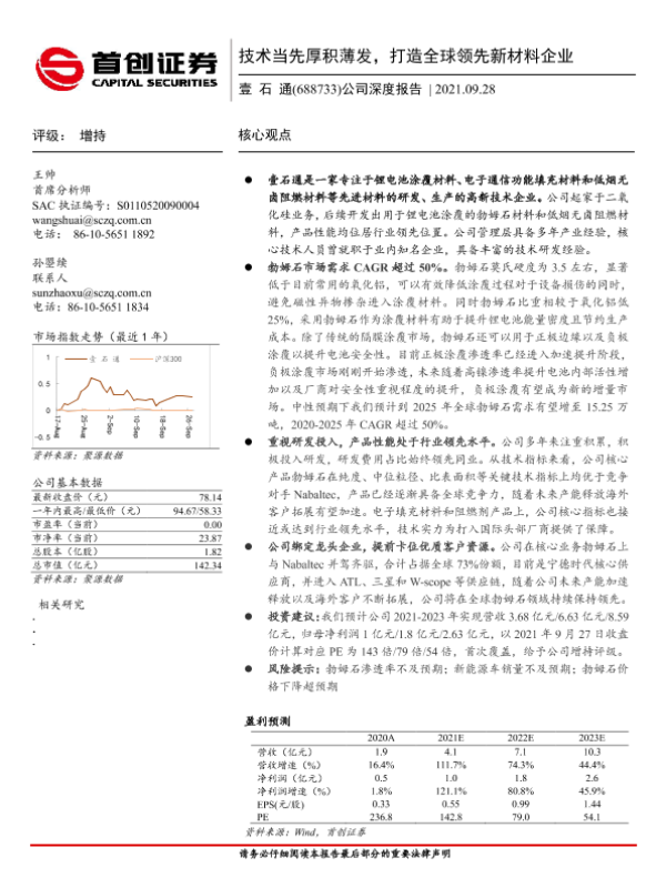 【首创证券】【20210928】20210928-首创证券-壹石通-688733.SH-公司深度报告:技术当先厚积薄发,打造全球领先新材料企业-29页 行业研究