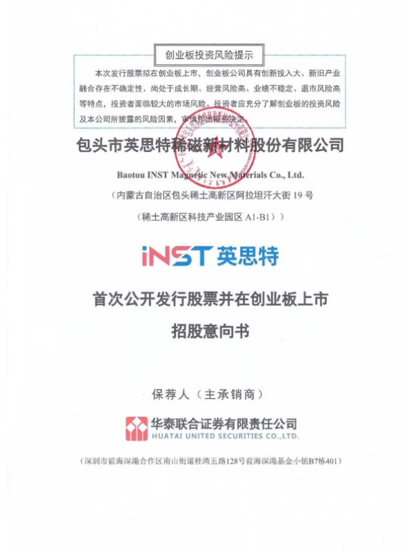 【包头市英思特稀磁新材料股份有限公司】【20241116】2024年11月16日更新-包头市英思特稀磁新材料股份有限公司创业板上市招股意向书-372页 招股书