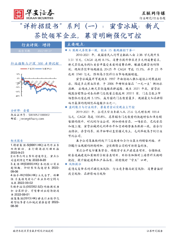 【华安证券】【20220927】“详析招股书”系列(一):蜜雪冰城:新式茶饮领军企业,募资明晰强化可控-14页 招股书