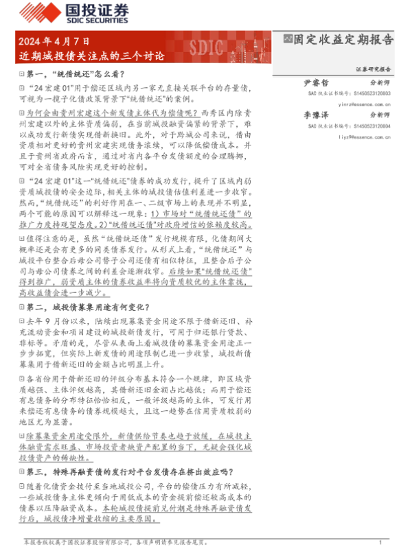 【国投证券】【20240407】近期城投债关注点的三个讨论-15页 行业研究