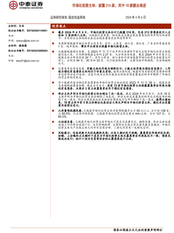 【中泰证券】【20240406】市场化经营主体:披露216家,其中18家删去表述-15页 行业研究
