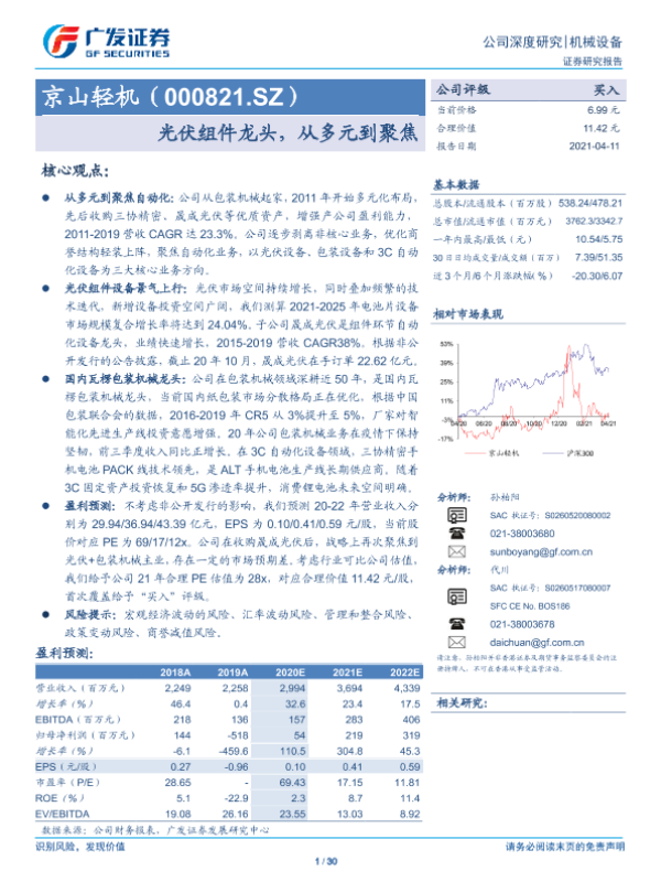 【广发证券】【20210411】京山轻机(000821.SZ):光伏组件龙头,从多元到聚焦-30页 行业研究