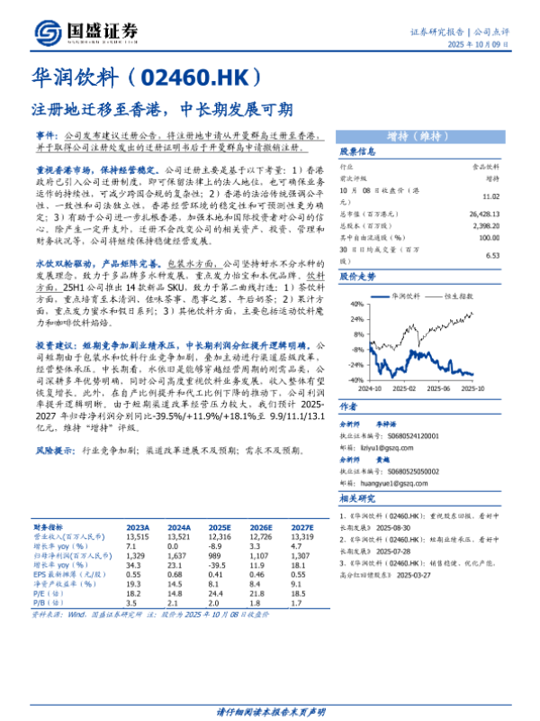 【海通国际】【202507】华润饮料(2460 HK)首次覆盖:产能与渠道驱动中期成长-26页 证券期货研究报告