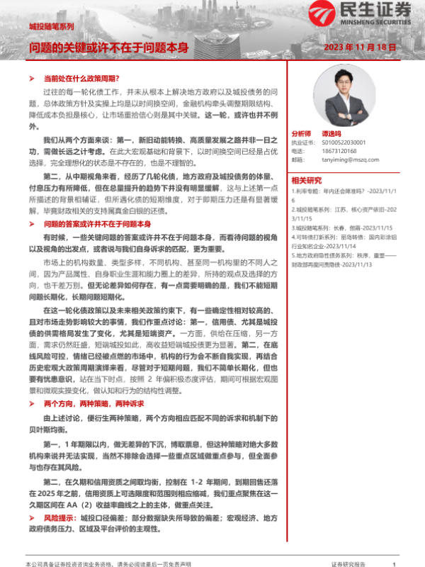 【民生证券】【20231118】城投随笔系列:问题的关键或许不在于问题本身-16页 行业研究