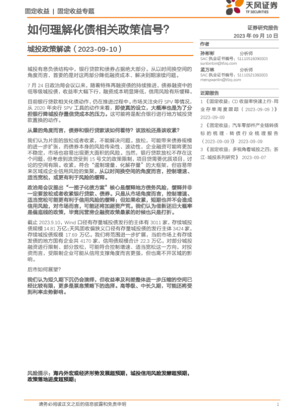 【天风证券】【20230910】城投政策解读:如何理解化债相关政策信号?-25页 行业研究