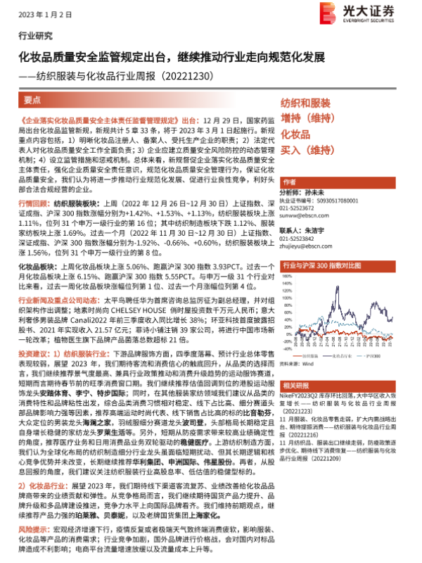 【光大证券】【20230102】20230102-光大证券-纺织服装与化妆品行业周报:化妆品质量安全监管规定出台,继续推动行业走向规范化发展-10页 行业研究