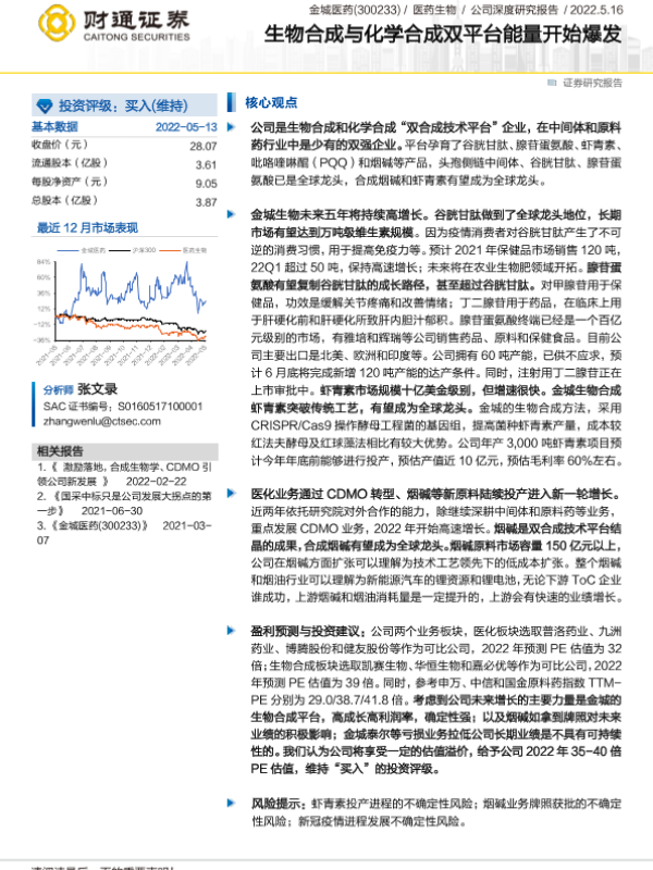【财通证券】【20220514】20220514-财通证券-金城医药-300233.SZ-生物合成与化学合成双平台能量开始爆发-35页 行业研究