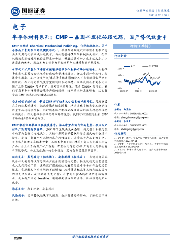 【国盛证券】【20210730】电子:半导体材料系列:CMP–晶圆平坦化必经之路,国产替代放量中-17页 行业研究