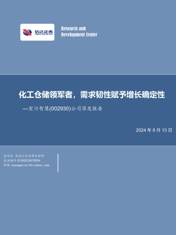 【信达证券】【20240813】宏川智慧(002930.SZ)深度报告:化工仓储领军者,需求韧性赋予增长确定性-26页 行业研究
