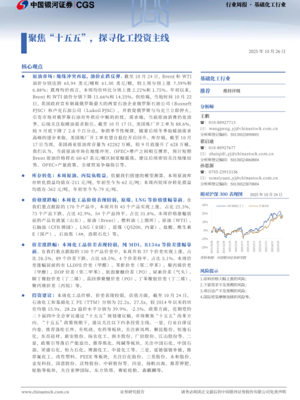 【银河证券】【202510】行业周报 ·基础化工行业:聚焦“十五五”,探寻化工投资主线-20页 证券期货研究报告