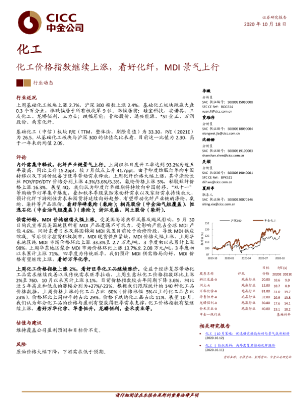 【中金公司】【20201018】化工:化工价格指数继续上涨,看好化纤,MDI景气上行-17页 行业研究