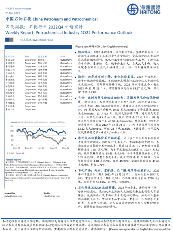【海通国际】【20221225】石化周报:石化行业2022Q4业绩前瞻-12页 行业研究
