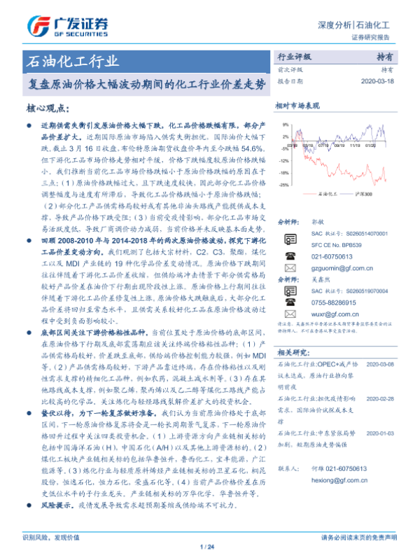 【广发证券】【20200318】复盘原油价格大幅波动期间的化工行业价差走势-24页 行业研究