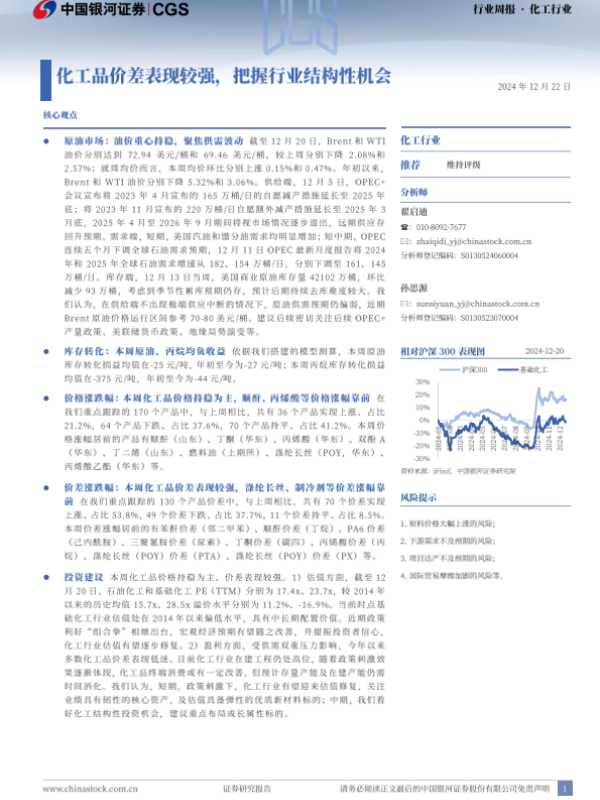 【银河证券】【20241222】20241222-中国银河-化工行业行业周报:化工品价差表现较强,把握行业结构性机会-19页 行业研究