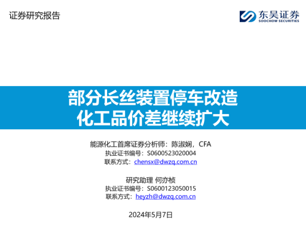 【东吴证券】【20240507】部分长丝装置停车改造化工品价差继续扩大-43页 行业研究