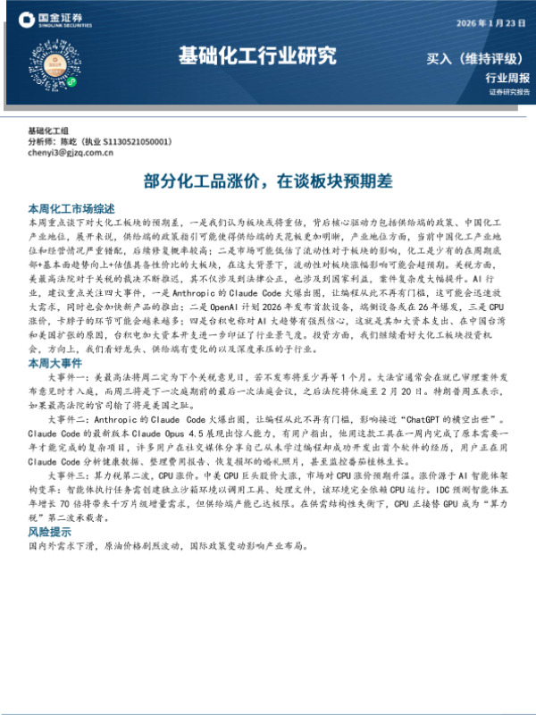【国金证券】【202601】部分化工品涨价,在谈板块预期差-23页 证券期货研究报告