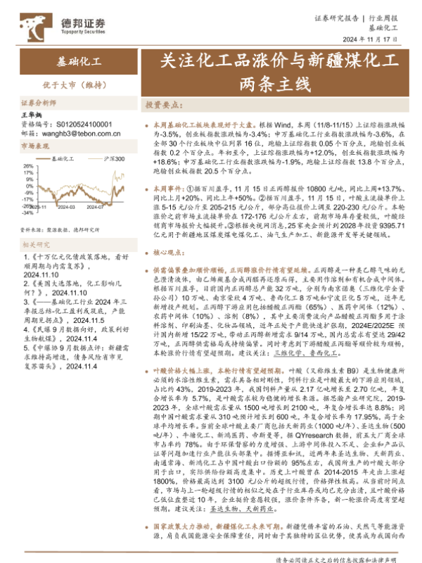 【德邦证券】【20241117】20241117-德邦证券-基础化工行业周报:关注化工品涨价与新疆煤化工两条主线-43页 行业研究