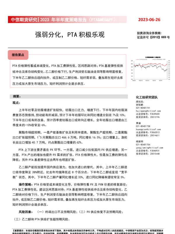 【中信期货】【20230626】2023年半年度策略报告(PTA&MEG&PF):强弱分化,PTA积极乐观-20页 行业研究