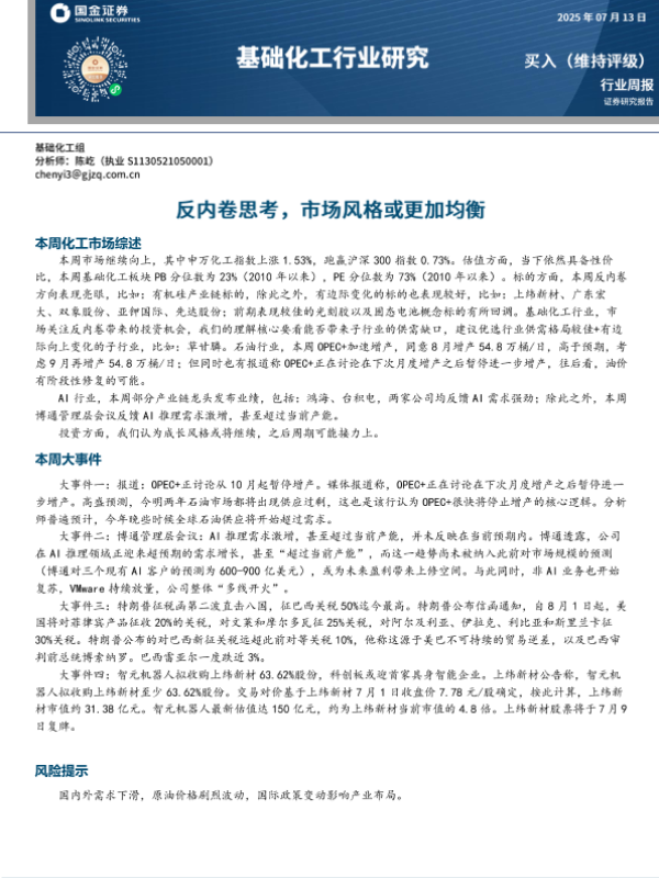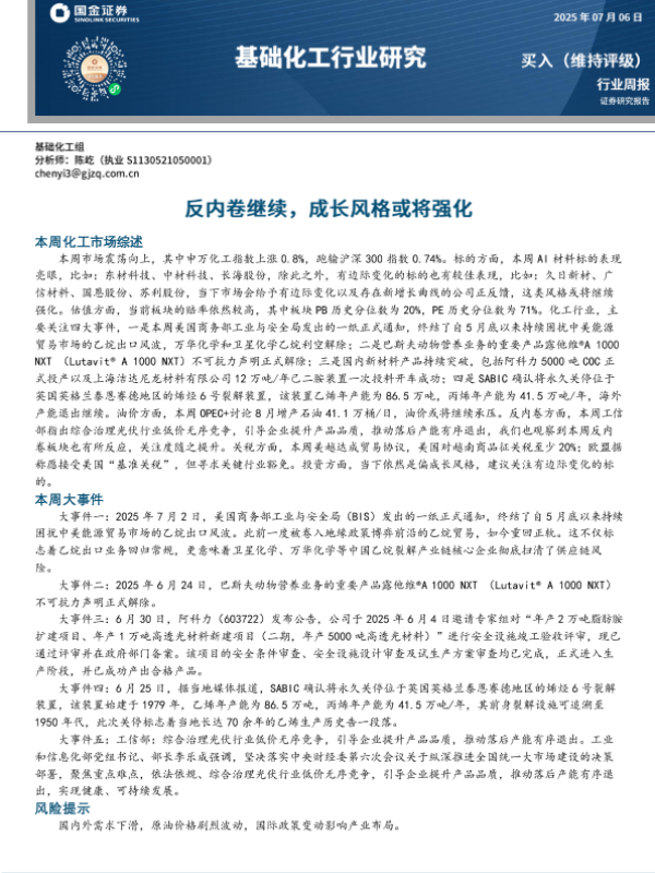 【国金证券】【20250706】基础化工行业研究:反内卷继续,成长风格或将强化-22页 行业研究