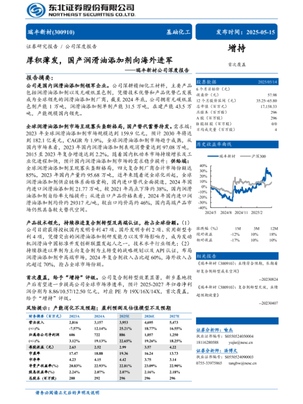 【东北证券】【20250515】瑞丰新材公司深度报告:厚积薄发,国产润滑油添加剂向海外进军-31页 证券期货研究报告