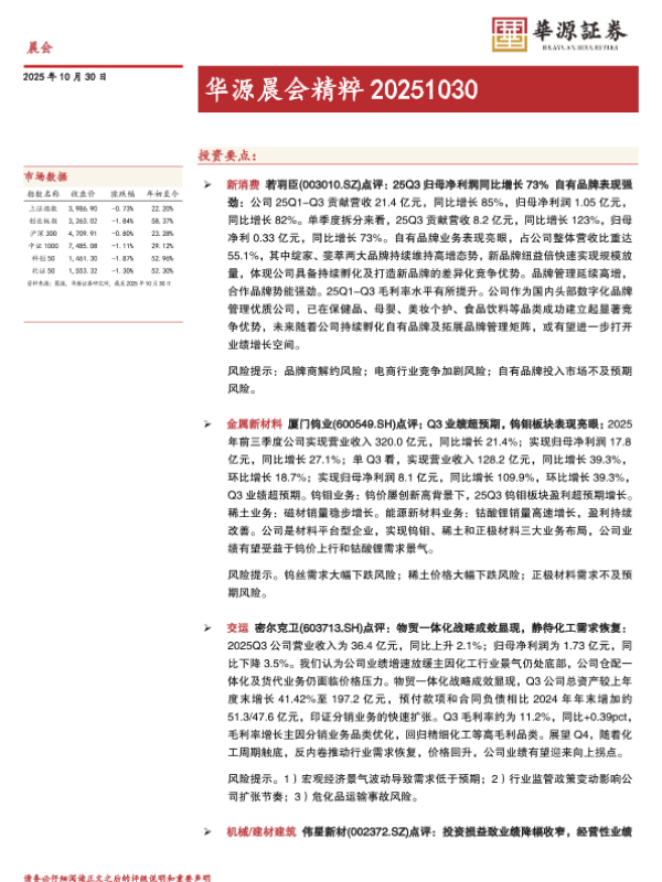 【华源证券】【202510】华源晨会精粹 20251030-12页 证券期货研究报告