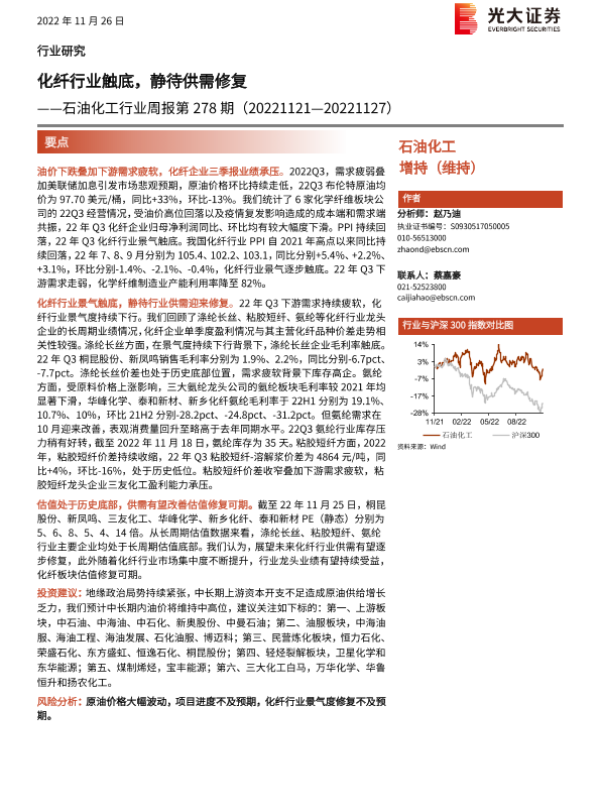 【光大证券】【20221126】20221126-光大证券-石油化工行业周报第278期:化纤行业触底,静待供需修复-19页 行业研究