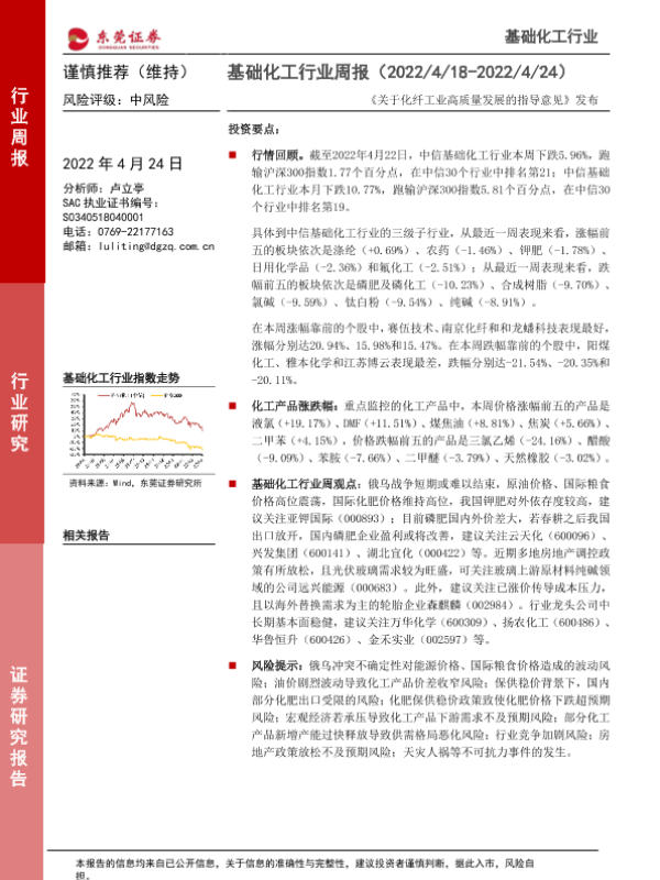 【东莞证券】【20220424】基础化工行业周报:《关于化纤工业高质量发展的指导意见》发布-12页 行业研究