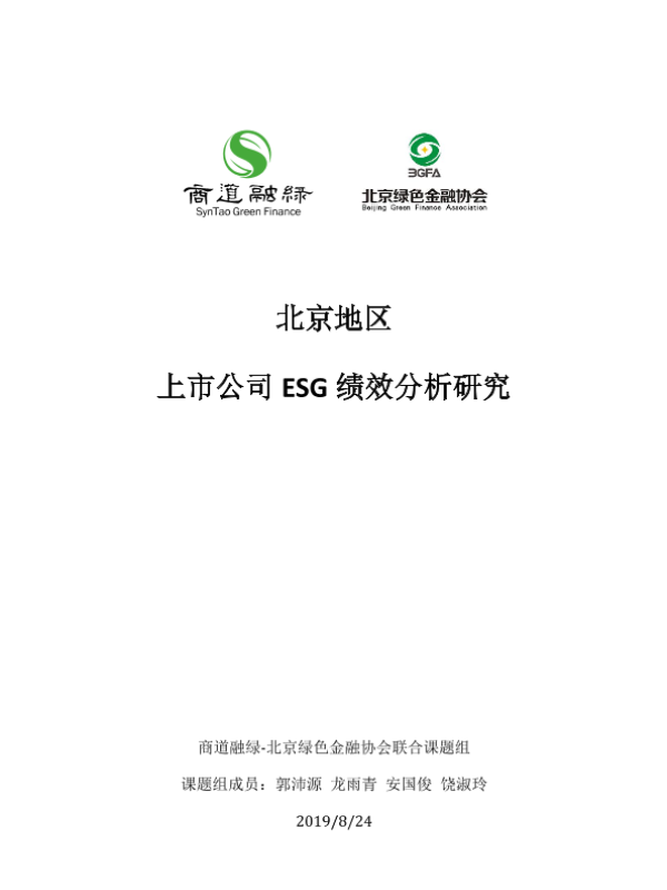 【商道融绿-北京绿色金融协会联合课题组】【20190824】北京地区上市公司ESG绩效分析研究-20页 行业研究