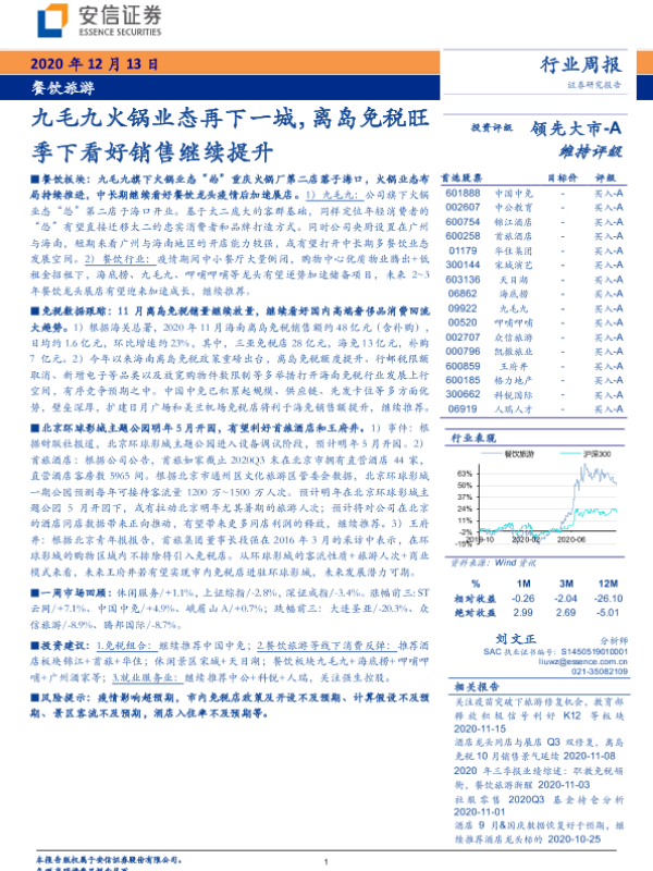 【安信证券】【20201213】九毛九火锅业态再下一城,离岛免税旺季下看好销售继续提升-10页 行业研究