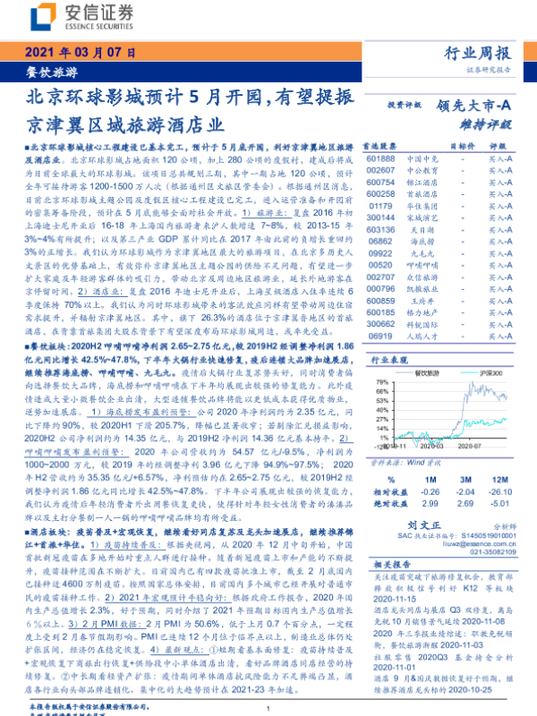 【安信证券】【20210307】餐饮旅游行业周报:北京环球影城预计5月开园,有望提振京津翼区域旅游酒店业-16页 行业研究