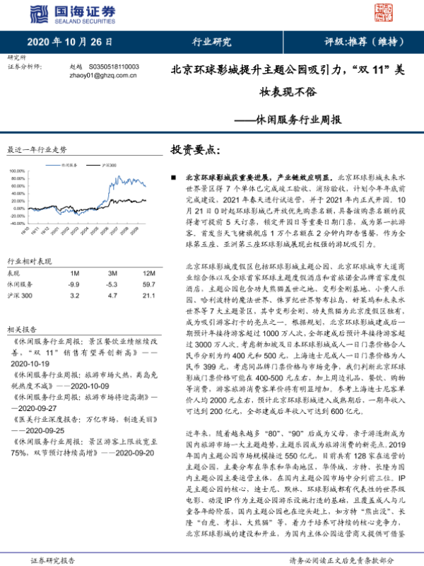【国海证券】【20201026】休闲服务行业周报:北京环球影城提升主题公园吸引力,“双11”美妆表现不俗-11页 行业研究