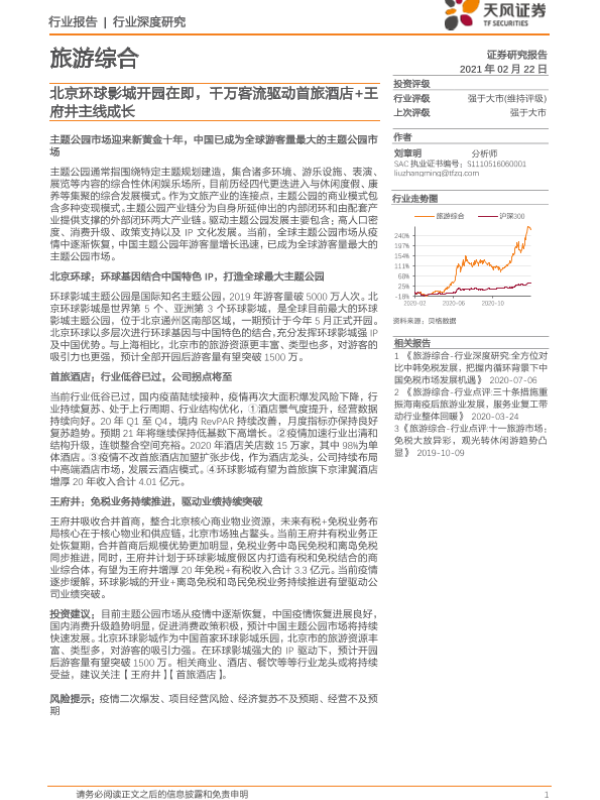 【天风证券】【20210222】旅游综合行业深度研究:北京环球影城开园在即,千万客流驱动首旅酒店+王府井主线成长-52页 行业研究