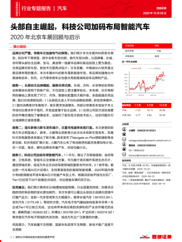 【西部证券】【20201003】2020年北京车展回顾与启示:头部自主崛起,科技公司加码布局智能汽车-12页 行业研究