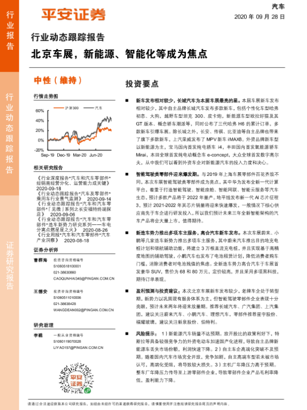 【平安证券】【20200928】北京车展,新能源、智能化等成为焦点-11页 行业研究