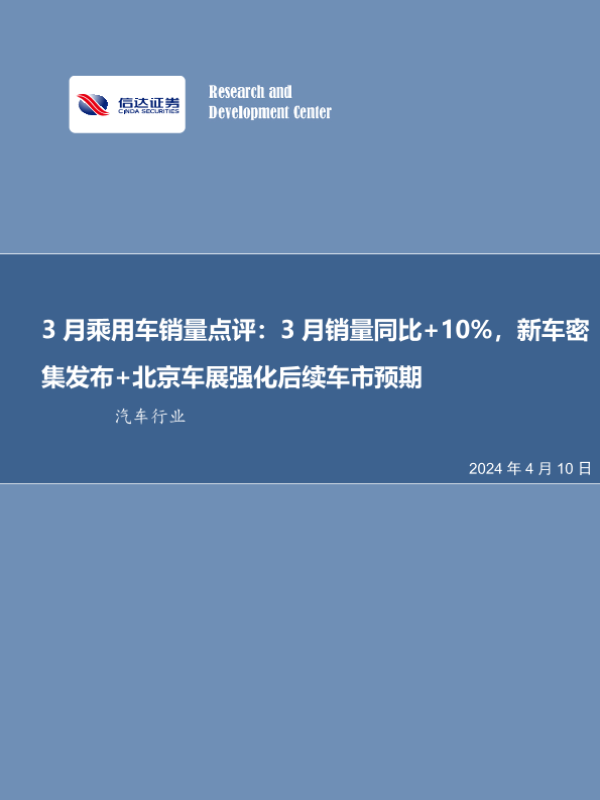 【信达证券】【20240410】汽车行业3月乘用车销量点评:3月销量同比+10%,新车密集发布+北京车展强化后续车市预期-11页 行业研究