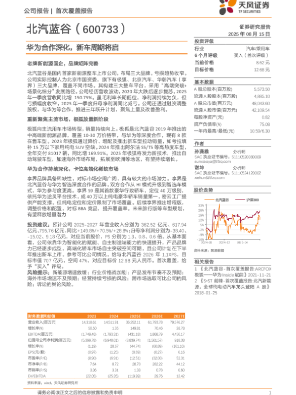 【天风证券】【20250815】北汽蓝谷-600733.SH-华为合作深化_新车周期将启-15页 证券期货研究报告