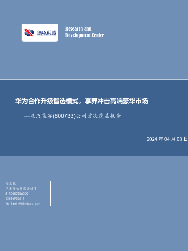 【信达证券】【20240403】北汽蓝谷-600733.SH-公司首次覆盖报告:华为合作升级智选模式,享界冲击高端豪华市场-31页 行业研究