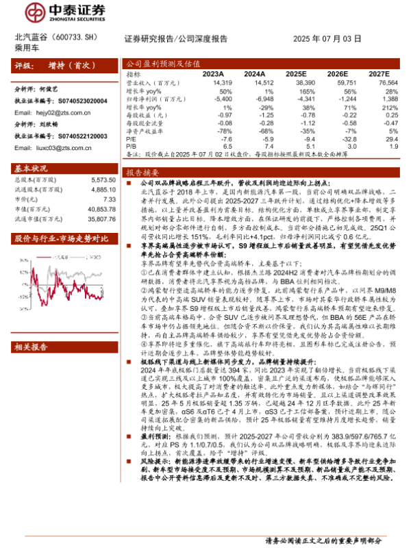 【中泰证券】【20250703】北汽蓝谷制定三年跃升计划提量增利,双品牌边际显著向好-21页 证券期货研究报告