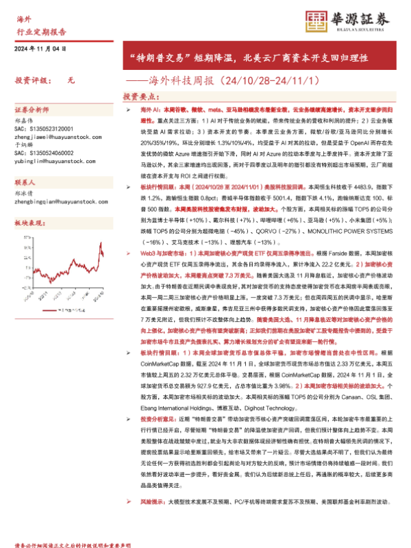 【华源证券】【20241104】海外科技周报:“特朗普交易”短期降温,北美云厂商资本开支回归理性-15页 行业研究