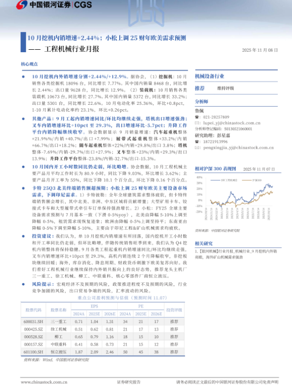 【银河证券】【202511】10月挖机内销增速+2.44%;小松上调 25财年欧美需求预测——工程机械行业月报-19页 证券期货研究报告