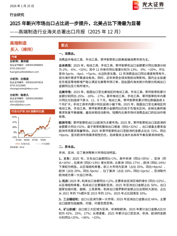【光大证券】【202512】2025年新兴市场出口占比进一步提升,北美占比下滑最为显著——高端制造行业海关总署出口月报(2025年12月)-10页 证券期货研究报告