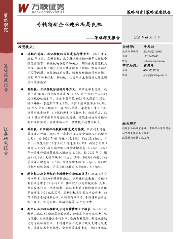 【万联证券】【20230810】策略深度报告:专精特新企业迎来布局良机-24页 行业研究