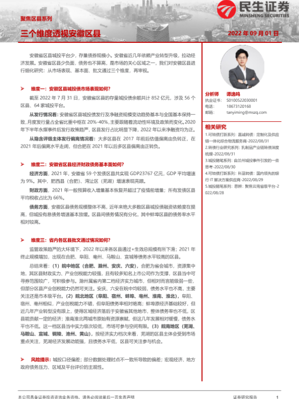 【民生证券】【20220901】聚焦区县系列:三个维度透视安徽区县-24页 行业研究