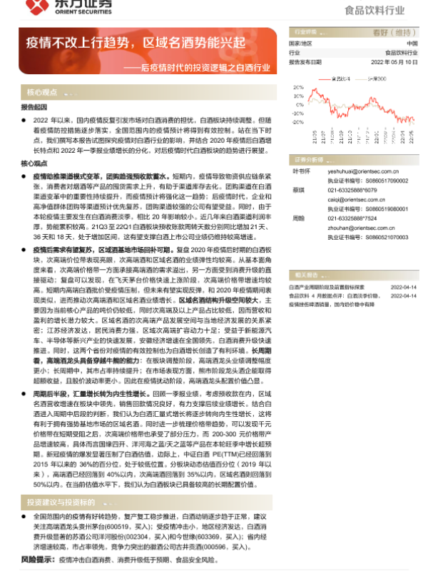 【东方证券】【20220510】食品饮料行业后疫情时代的投资逻辑之白酒行业:疫情不改上行趋势,区域名酒势能兴起-26页 行业研究