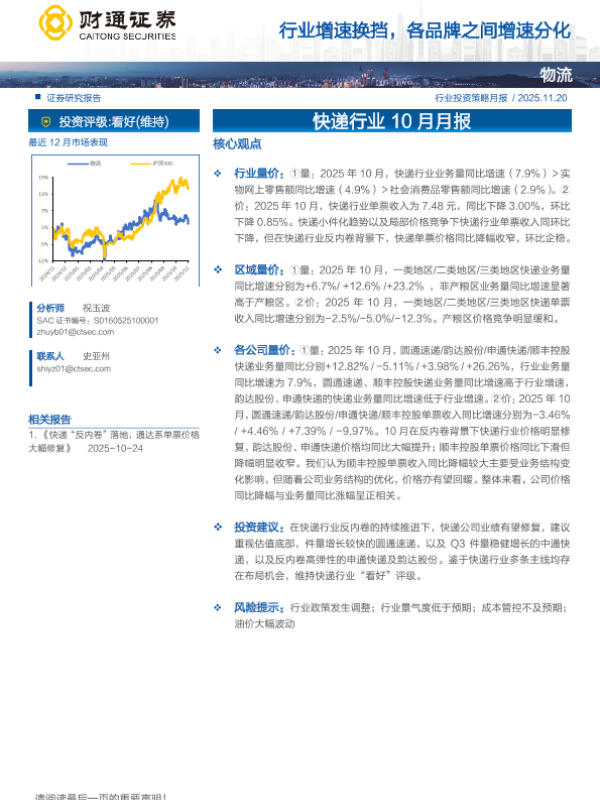【财通证券】【202511】快递行业10月月报:行业增速换挡,各品牌之间增速分化-11页 证券期货研究报告