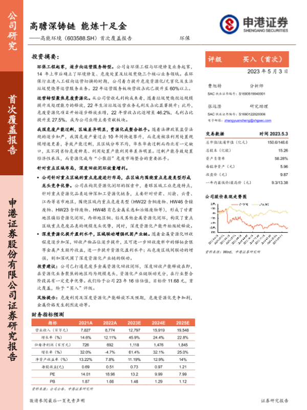 【申港证券】【20230503】20230503-申港证券-高能环境-603588.SH-首次覆盖报告:高瞻深铸链 能炼十足金-30页 行业研究