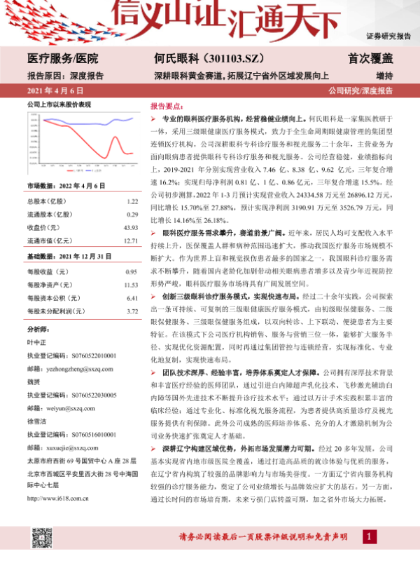 【山西证券】【20220406】何氏眼科-301103.SZ-深耕眼科黄金赛道,拓展辽宁省外区域发展向上-42页 行业研究