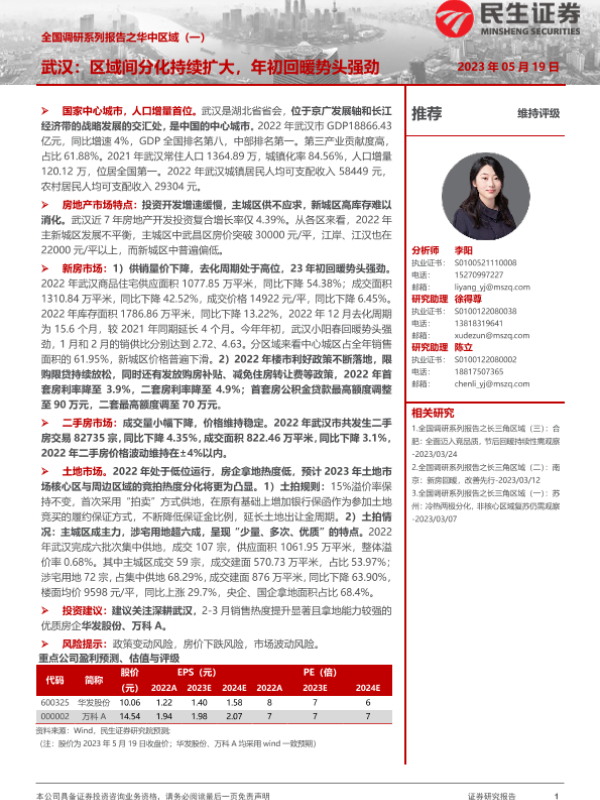 【民生证券】【20230519】全国调研系列报告之华中区域(一):武汉:区域间分化持续扩大,年初回暖势头强劲-19页 行业研究